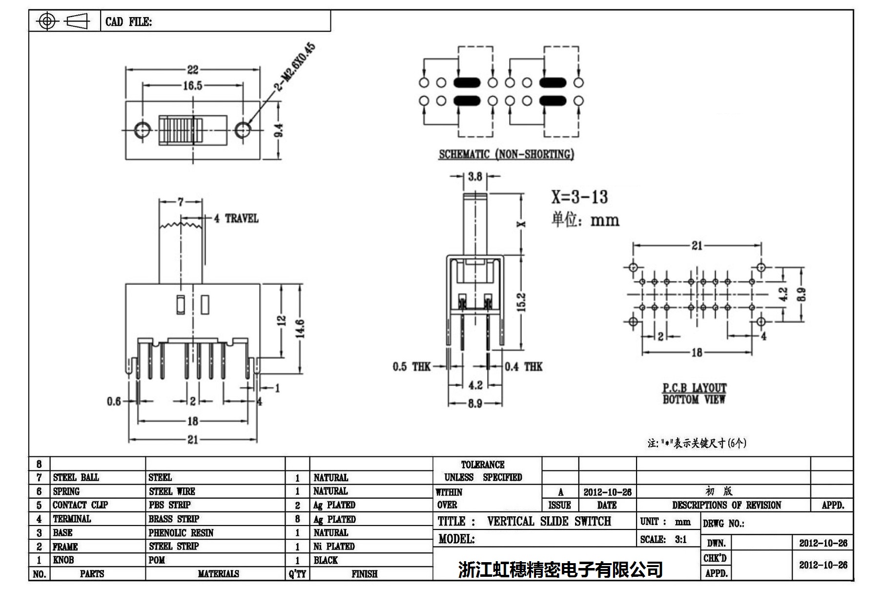 Verticaltoggle switch side dial/ Vertical slide switch technical indicators