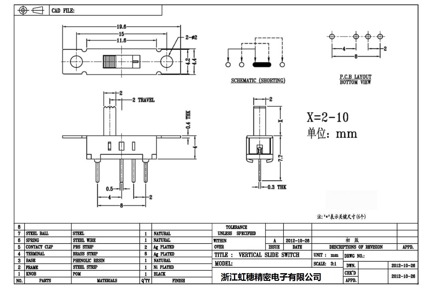 Verticaltoggle switch side dial/ Vertical slide switch technical indicators