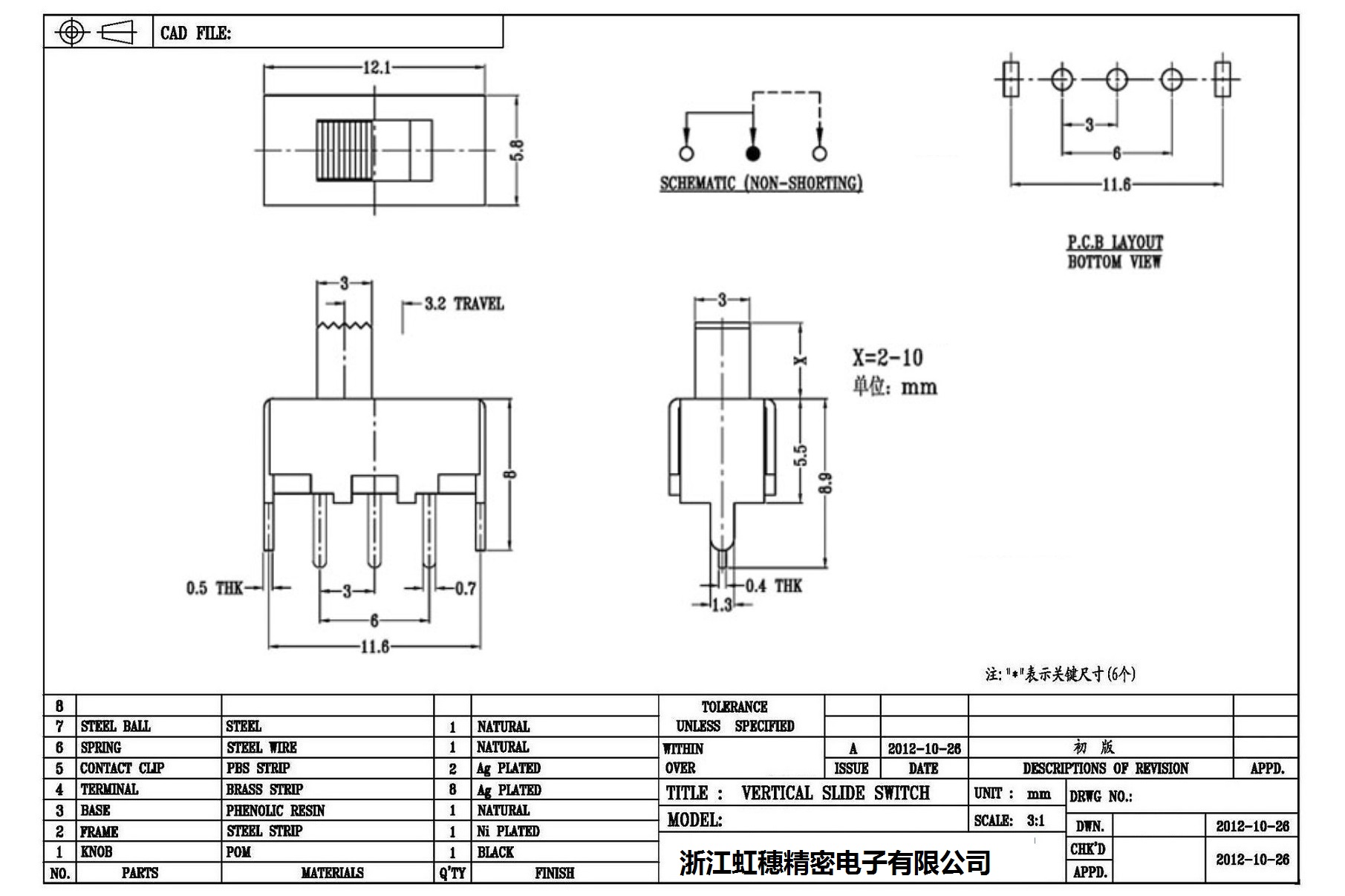 Verticaltoggle switch side dial/ Vertical slide switch technical indicators