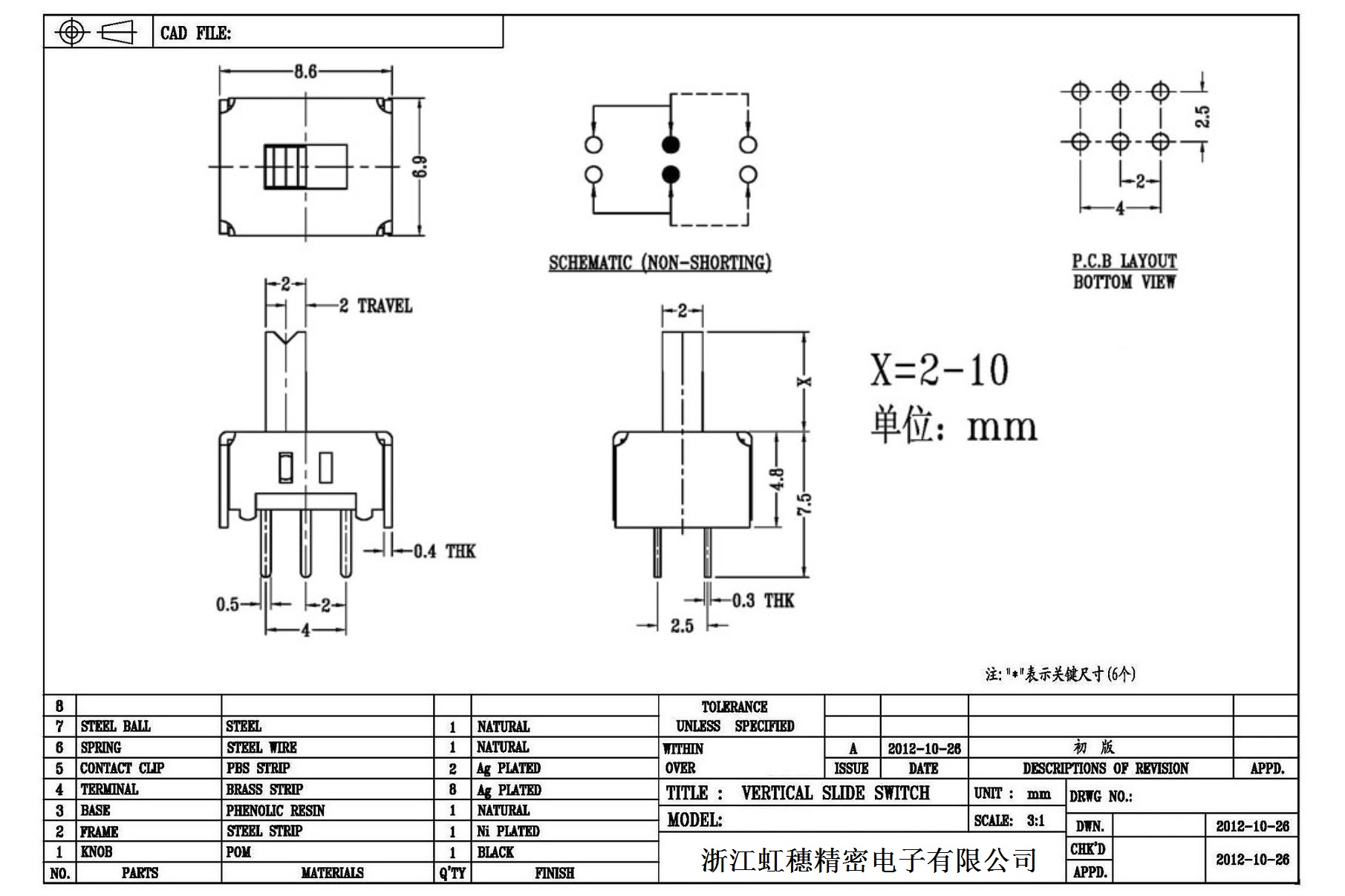 Verticaltoggle switch side dial/ Vertical slide switch technical indicators