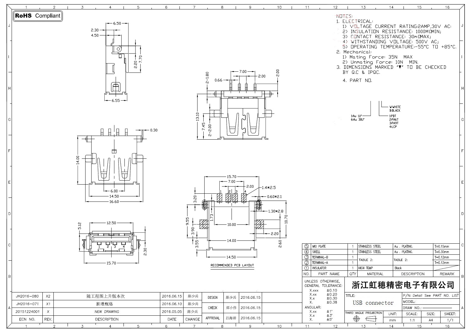 Product name:  USB 2.0 Jack connector